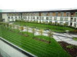 I was treated with the opportunity to spend the night and all day today at the new St George’s Park in Burton England. This 100MM British Pound multi-purpose, recently completed facility is the finest of its type anywhere. It has a pair of lovely hotels, meeting space, complex banquet and dining rooms, incredible soccer fields (including an exact replica/duplicate) of the Wembley Stadium surface (same size, crown, sub-base, grass, everything). The physical therapy facility and aquatics center will be used to help wounded war veterans go through rehabilitation.